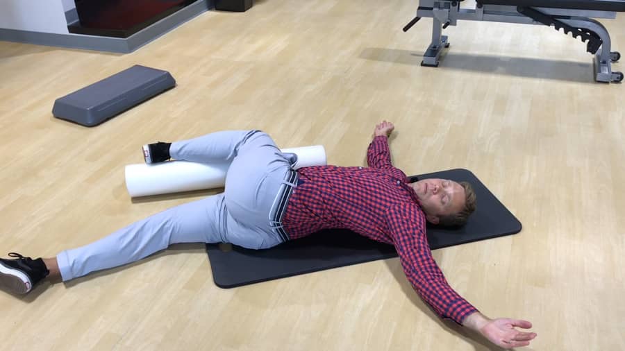 Ensure head and neck are in line with the spine. Flex your knee and rest your leg on the foam roller so that your leg forms at least a 90 degree angle can be raised a little higher than 90 degrees. Stretching the muscle spindles in the pelvic muscles lengthens them for a short time.